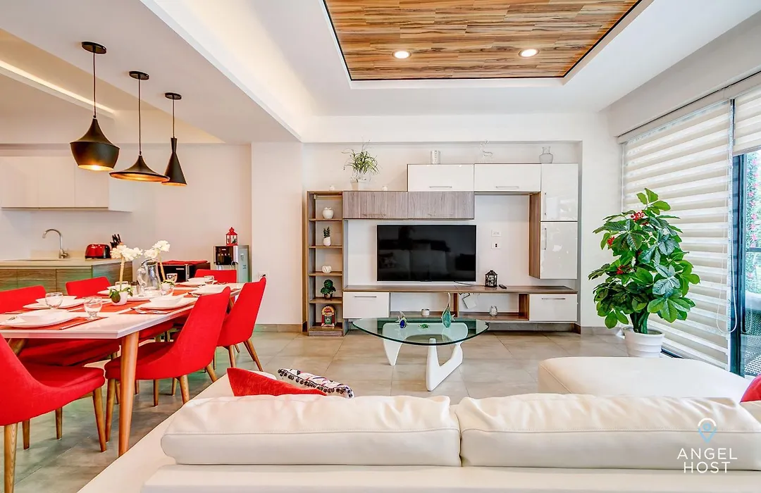 Hay una cocina completa con instalaciones de cortesía, incluyendo un horno de microondas, una nevera y utensilios de cocina. Los huéspedes pueden disfrutar de platos italianos en el restaurante Cheester Playa del Carmen, a tan solo 5 minutos a pie. Las alternativas de transporte en la zona incluyen la parada de autobús Colectivo pick up, situada a unos 10 minutos a pie.